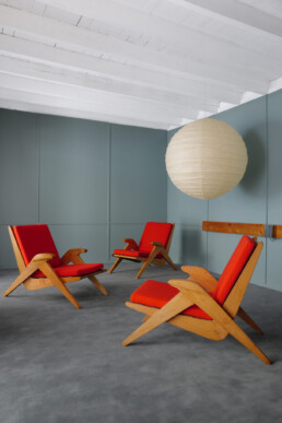 L’exposition « Enameled Summit » s’inscrit dans cette histoire en présentant de rares assises conçues par Charlotte Perriand et Pierre Jeanneret pour l’hôtel du Vallon à Méribel en 1949.