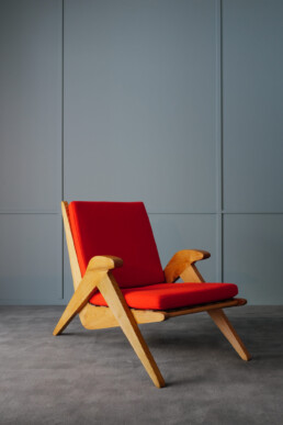 Charlotte Perriand et Pierre Jeanneret, rares fauteuils pour l’hôtel “Le Vallon” à Meribel en 1949.