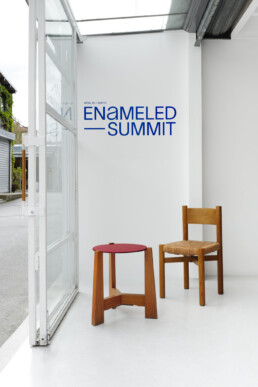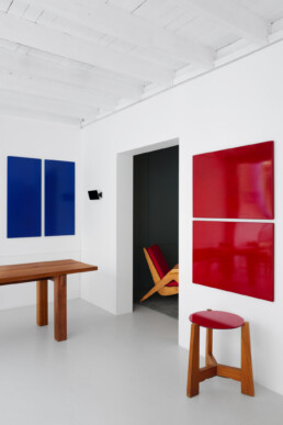Rare guéridon, piétement en acajou et plateau en verre églomisé rouge.