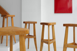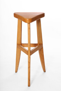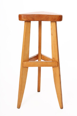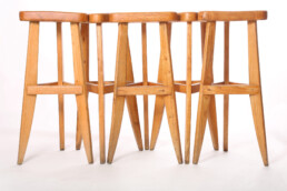 Charlotte Perriand, rares tabourets hauts en frêne massif, pour l’hôtel “Le Vallon” à Meribel en 1949.