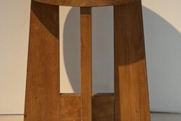Tabouret en chêne massif. Modèle créé vers 1935. Provenance, chalet du Mont d’Arbois à Megève. Alpes françaises.