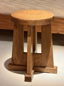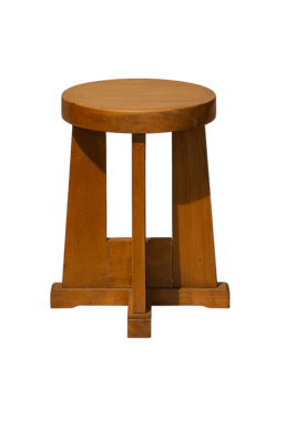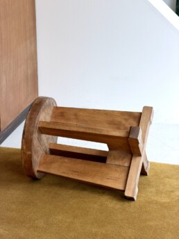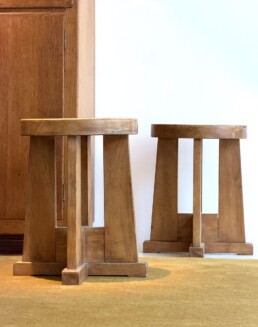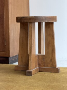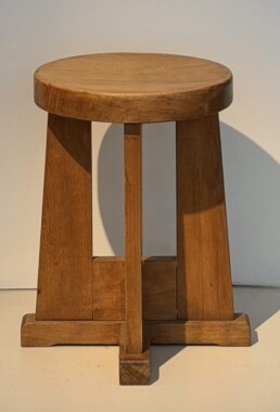 Tabouret en chêne massif. Modèle créé vers 1935. Provenance, chalet du Mont d’Arbois à Megève. Alpes françaises.