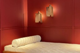 Daybed in light mahogany. French work from the 1940s, in the style of Jean-Michel Frank.