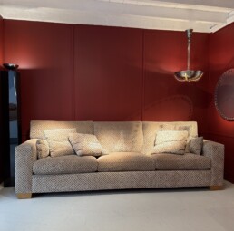 Modernist sofas in silk velvet, on 4 solid oak legs. 1990’s.